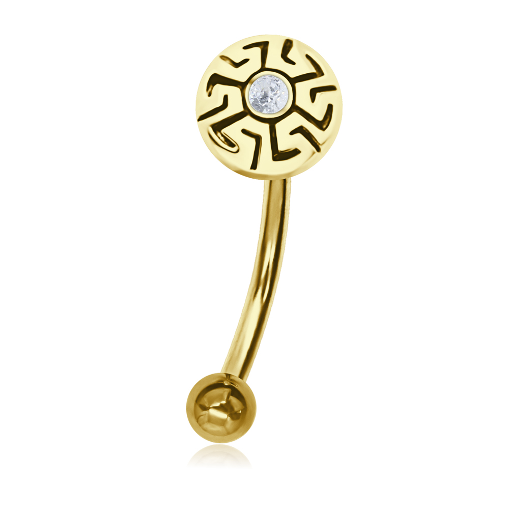 Augenbrauenpiercing Rook Piercing Chirurgenstahl Banane goldfarbig mit Silbermotiv keltisches Motiv