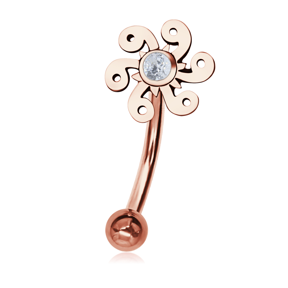 Augenbrauenpiercing Rook Piercing Chirurgenstahl Banane roségoldfarbig mit Silbermotiv Sonne