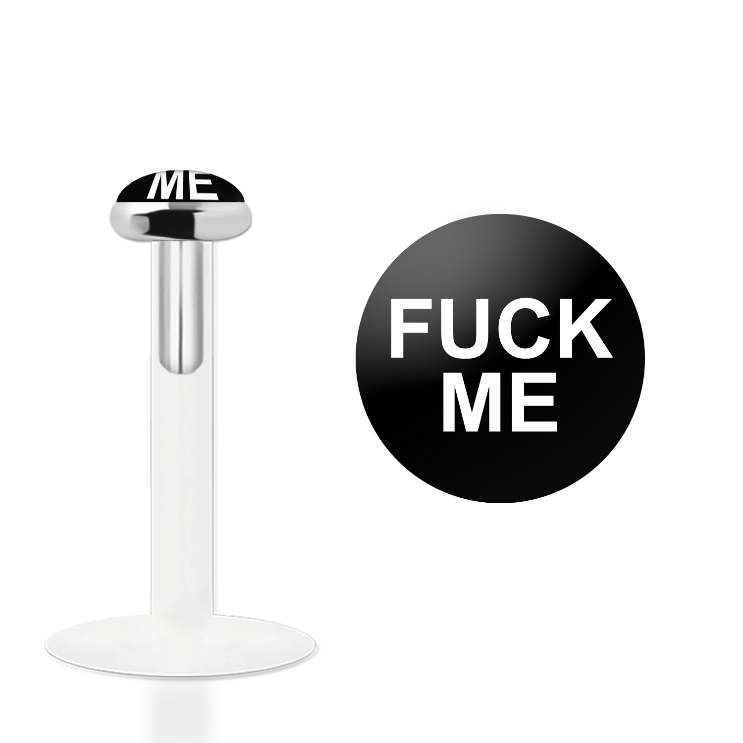 Produktinformationen "Labret Stecker Bioflex mit Steckaufsatz aus Silber und Logo-Motiv Fuck me"