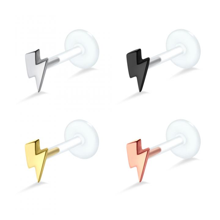 PTFE Tragus Labret Blitz silber schwarz goldfarbig roségoldfarbig