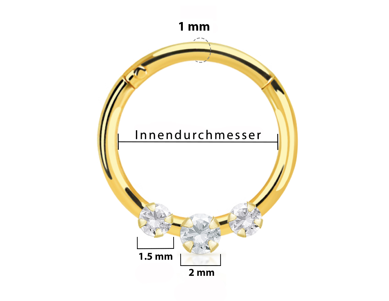 Segmentring Clicker aus 925er Silber goldfarbig mit drei Kristallen