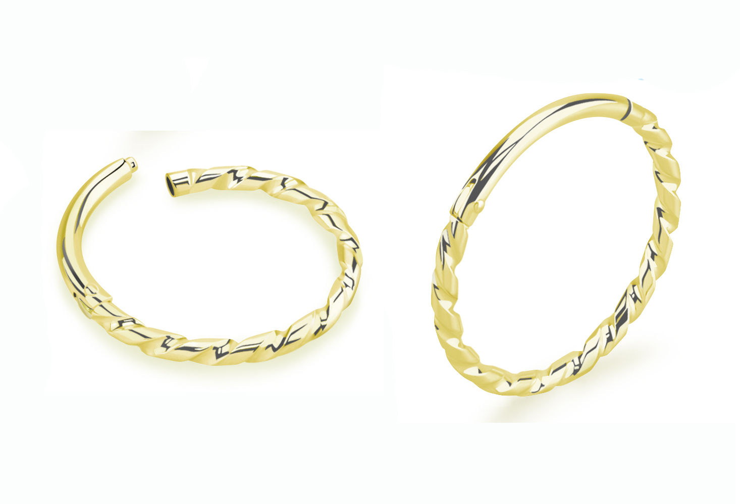 Segmentring Clicker mit Klickverschluss 14karat Gelbgold gedreht Tauoptik 1.0mm Stabstärke