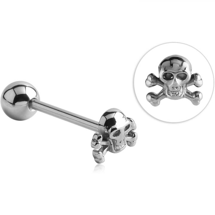 Zungenpiercing Barbell Piraten Totenkopf Motiv Stahl Hantel 1,6mm